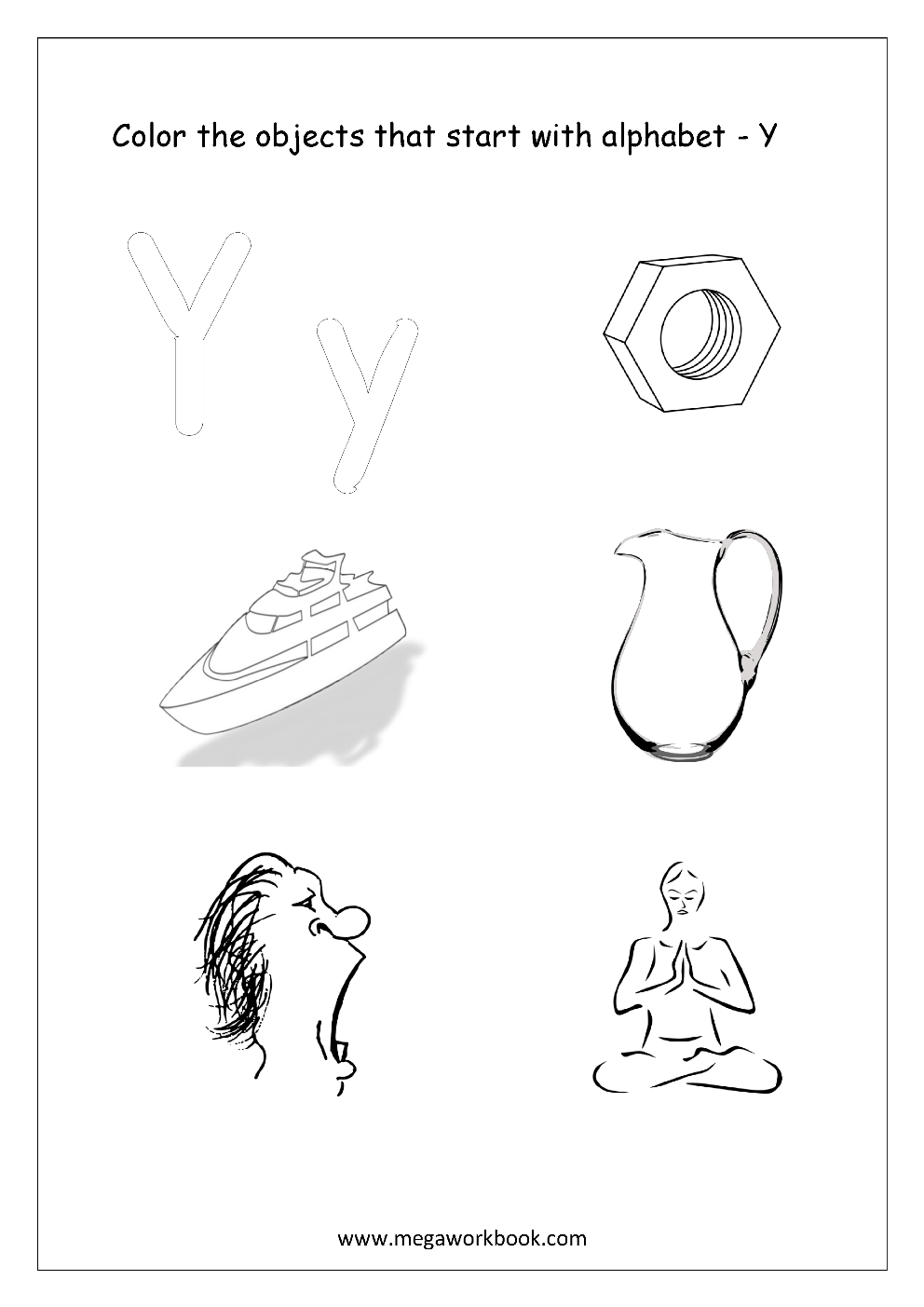These alphabet picture coloring pages help children understand the things that start with a particular alphabet. There are worksheets to test your child's understanding by coloring only those objects which start with some alphabet out of many given objects.