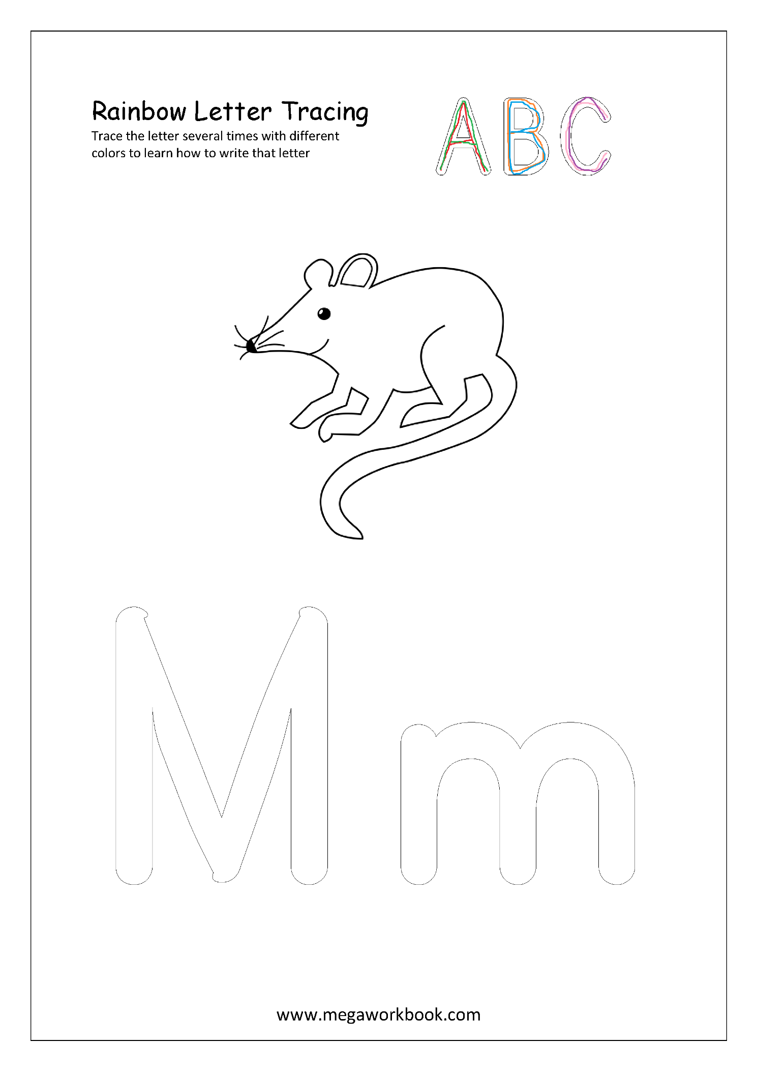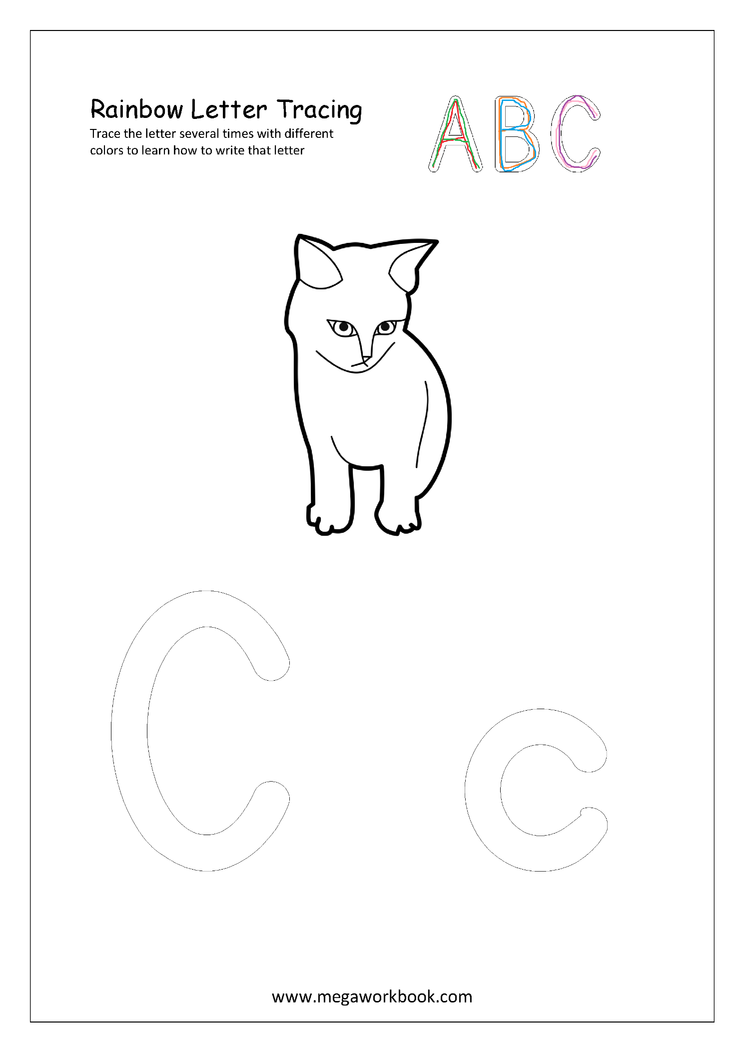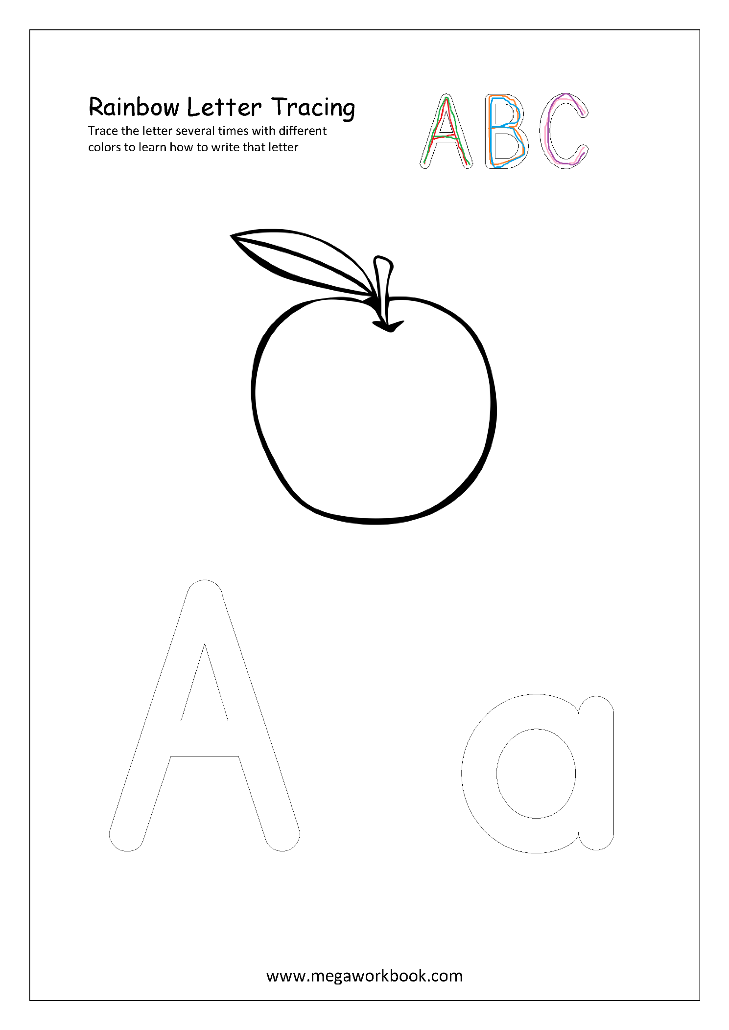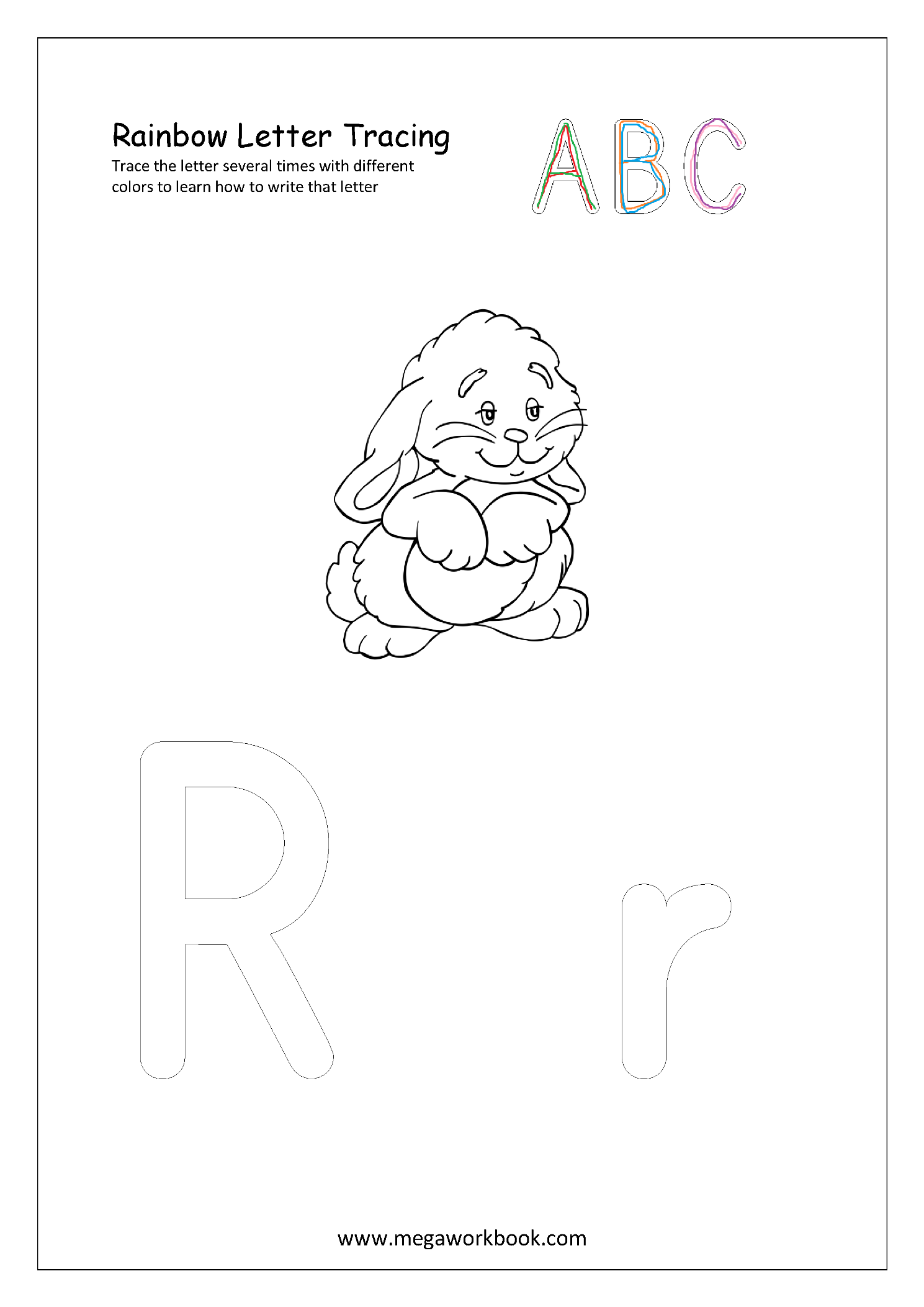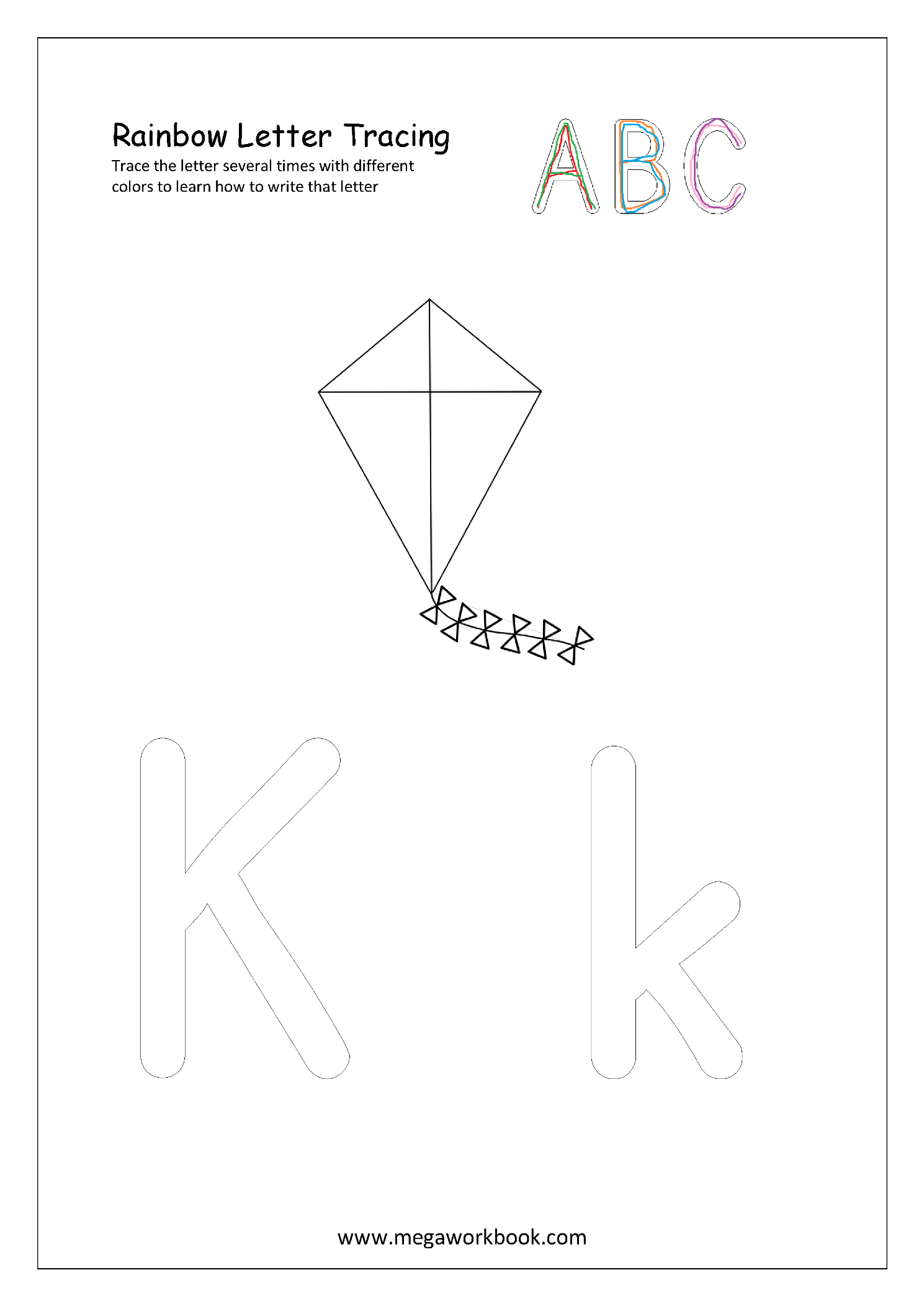 Help your child learn alphabets (A-Z, a-z) by using these Rainbow Letter Tracing printable worksheets–Trace with different color pencils several times to learn alphabet formation.