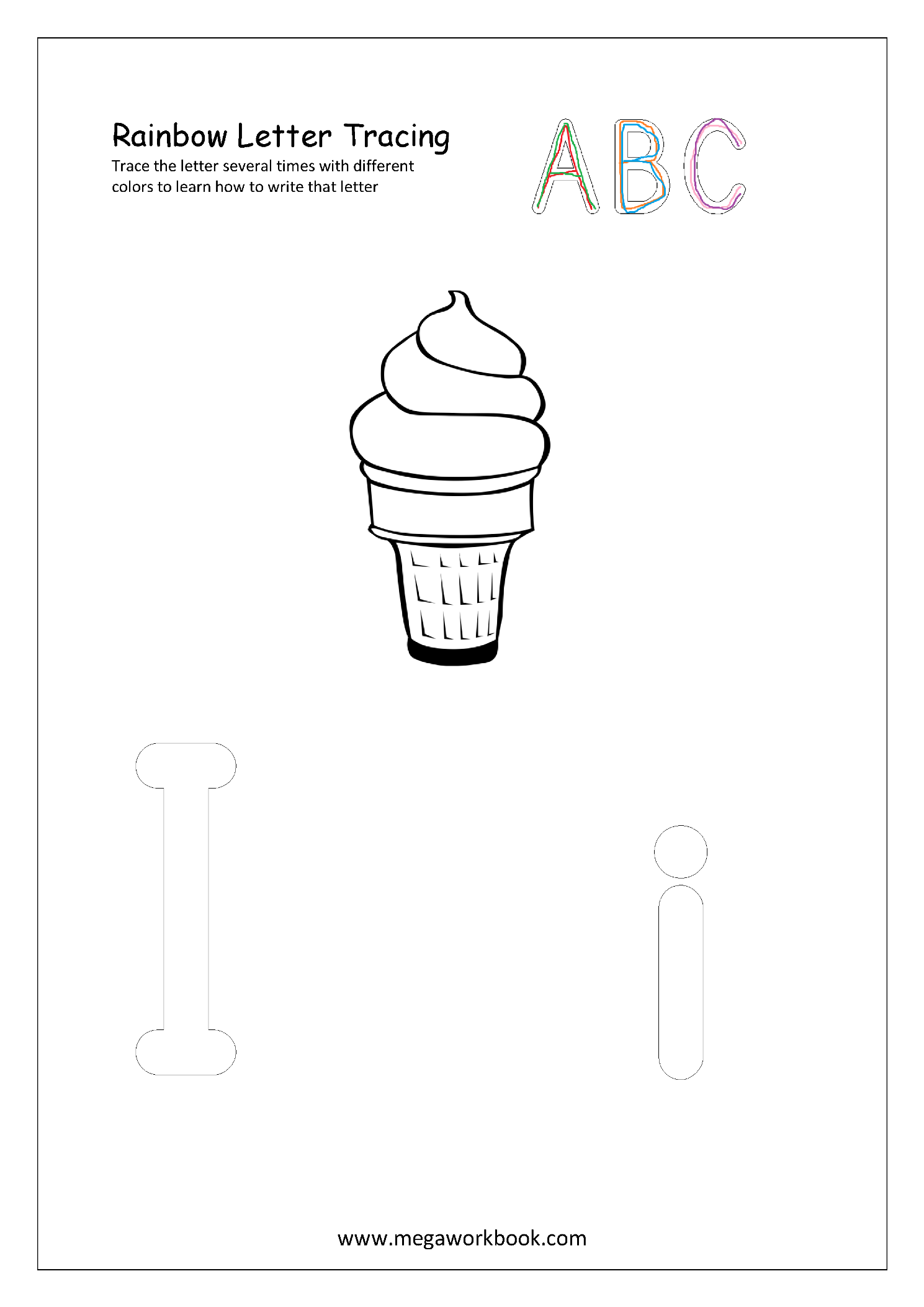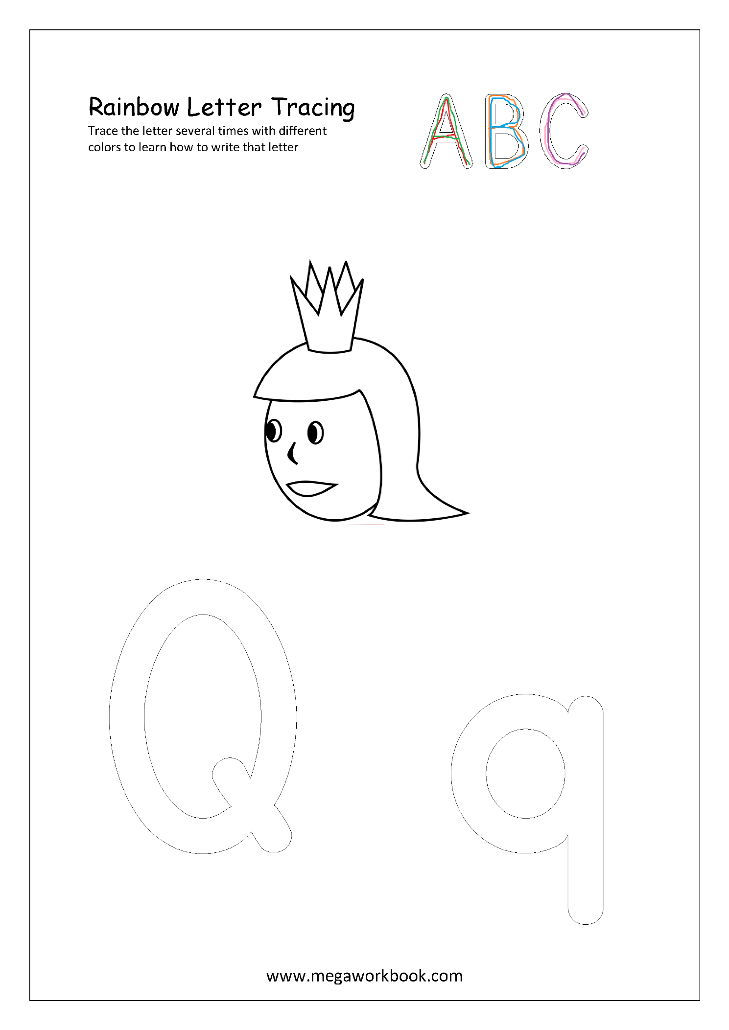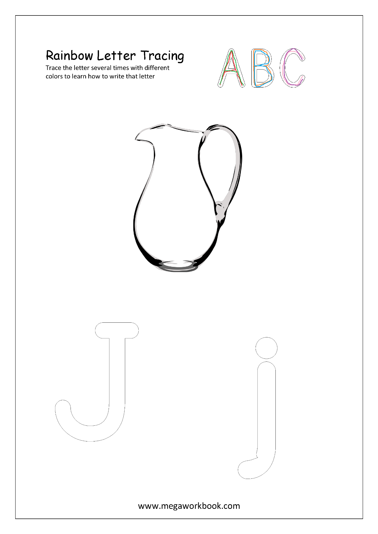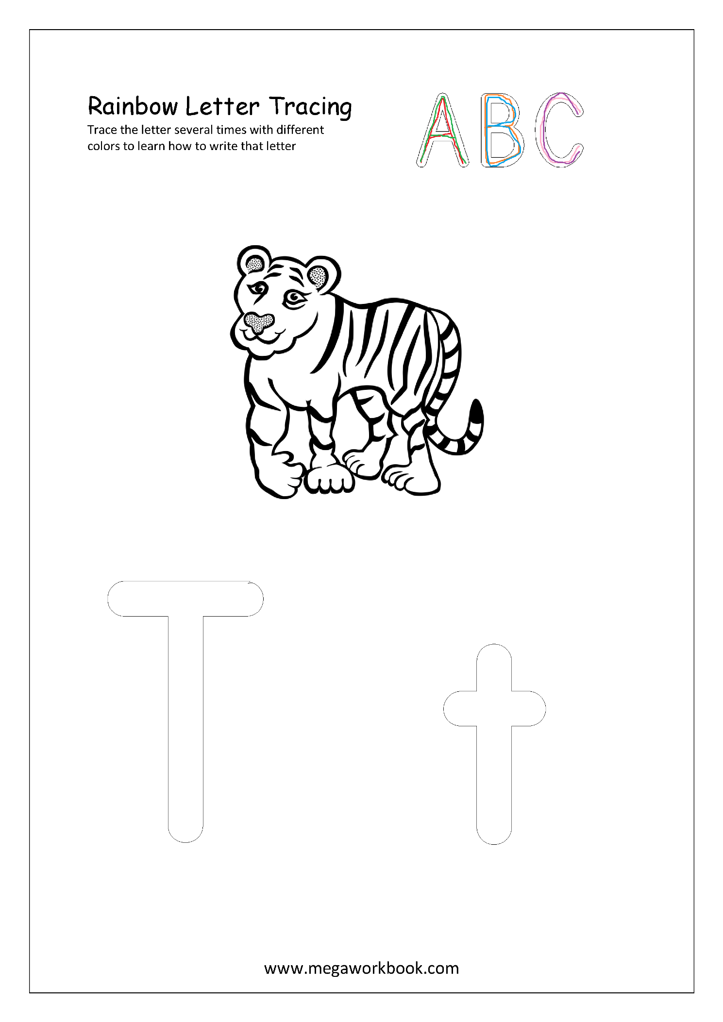 1. Ask your child to trace the letter several times with different color pencils to learn letter formation.